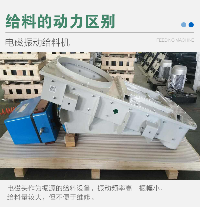 電磁振動給料機是以電磁頭作為振源的給料設備,振動頻率高,振幅小,給料量較大,但不便于維修,如果電磁頭出現問題,給料機就可能停用!