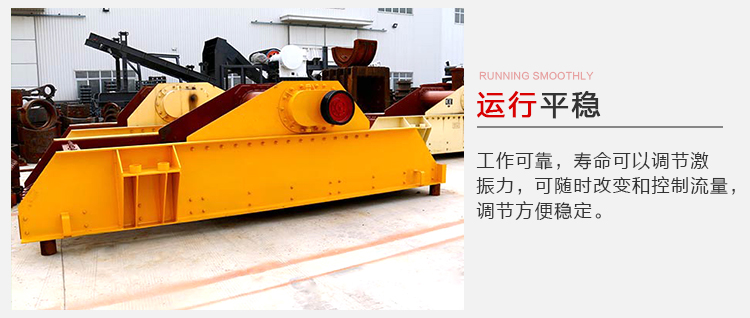 振動平穩,工作可靠,壽命可以調節激振力,可隨時改變和控制流量,調節方便穩定,振動電機為激振源,噪音低,耗電少,調節性能好,無沖料現象,結構簡單,運行可靠。