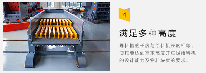 導(dǎo)料槽的長(zhǎng)度與給料機(jī)長(zhǎng)度相等,以約束物料,使其形成一定高度來(lái)滿足給料機(jī)的設(shè)計(jì)能力及物料塊度的要求。