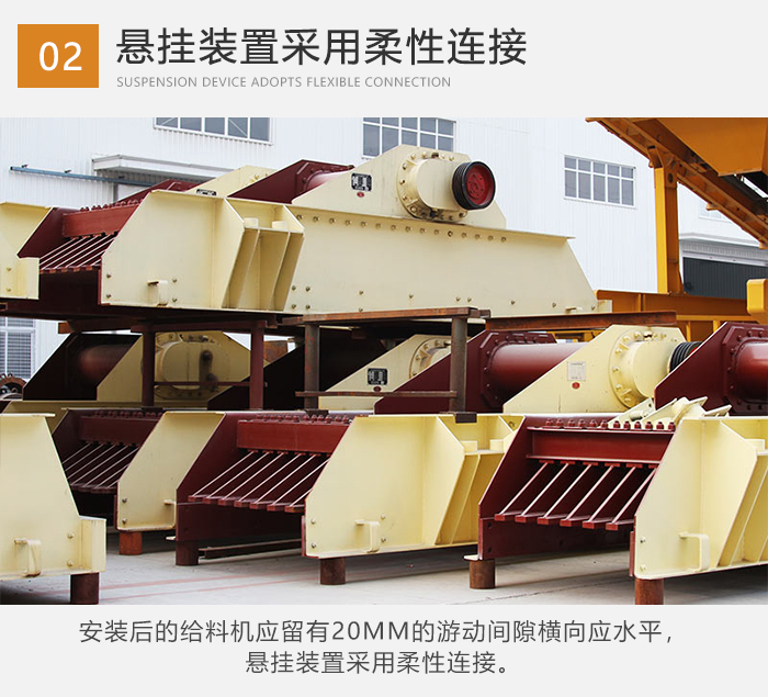 ⒉安裝后的給料機應(yīng)留有20mm的游動間隙橫向應(yīng)水平,懸掛裝置采用柔性連接。