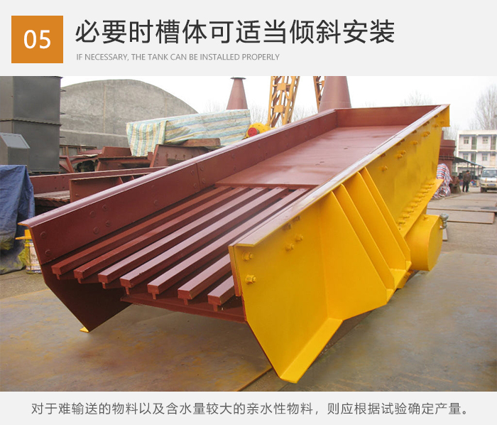 6.對于難輸送的物料(如滑石粉、鈦白粉、白泥、面粉、粘土等),以及含水量較大的親水性物料,則應(yīng)根據(jù)試驗確定產(chǎn)量。必要時將振動給料機的槽體適當(dāng)傾斜安裝(一般向下傾斜10~15度),以增加給料量。